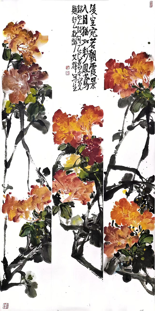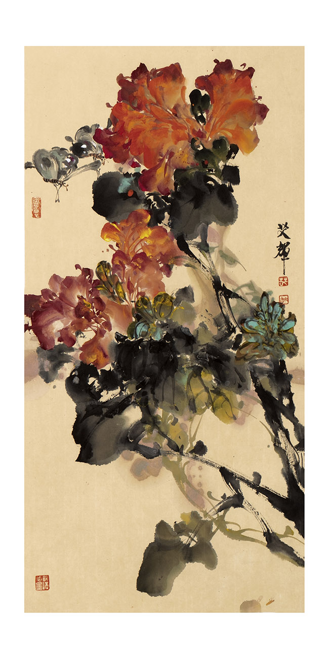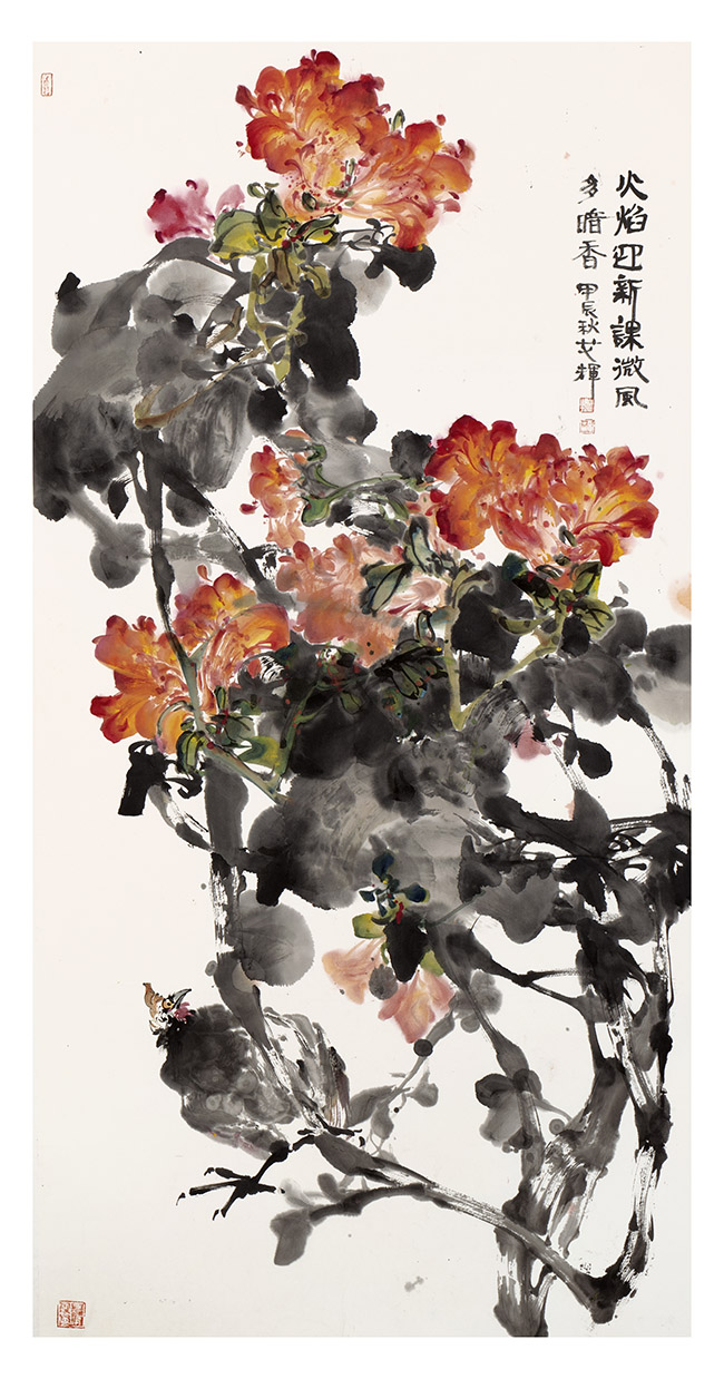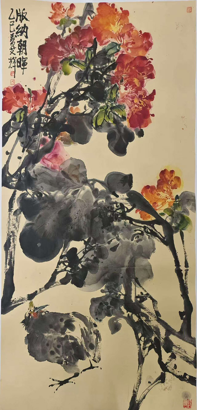 在当代中国画坛,艾辉先生的花鸟作品犹如一股来自热带雨林的清风,既延续了宋元以来中国花鸟画的文脉传承,又以炽热浓烈的色彩语言开创了独特的视觉诗学。本系列几幅佳作,集中呈现了艺术家甲辰年至癸卯年间对热带花卉题材的深入探索,堪称其西双版纳写生创作的精华缩影。