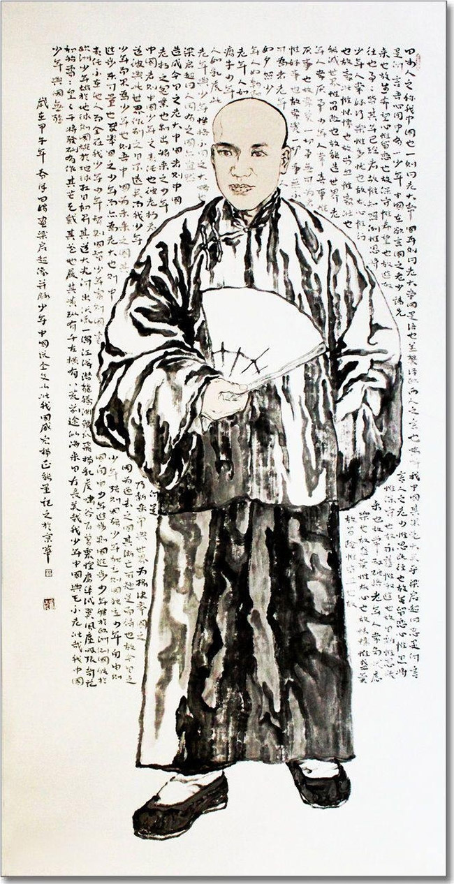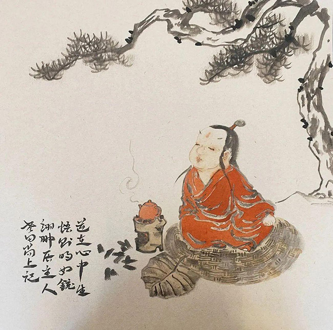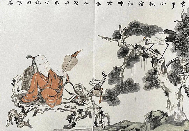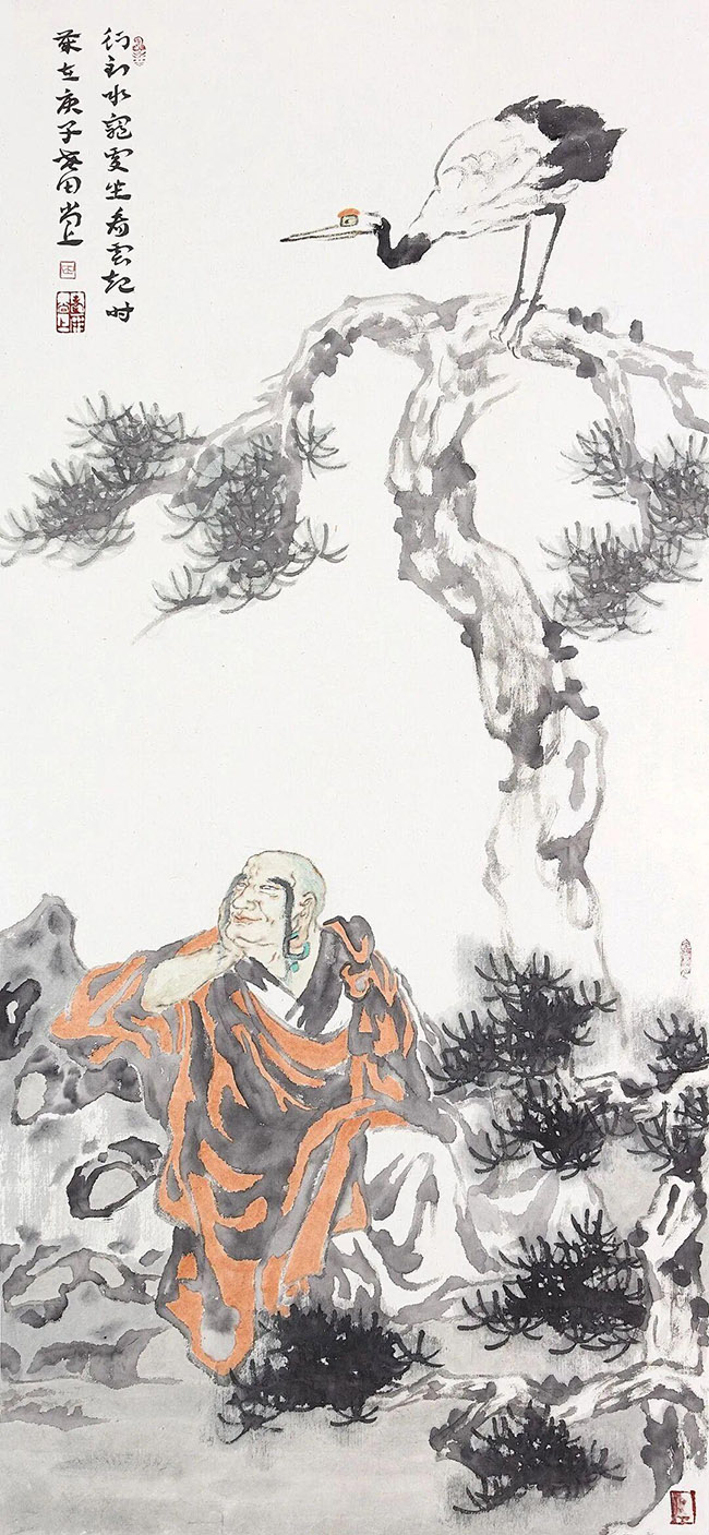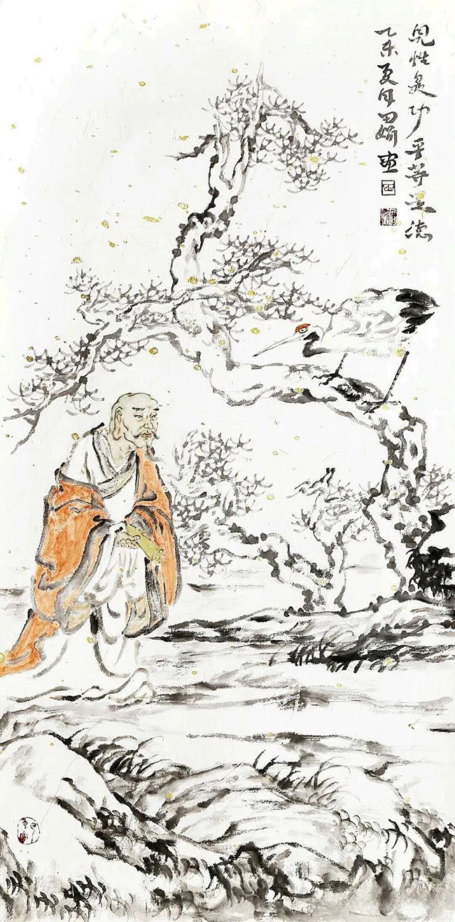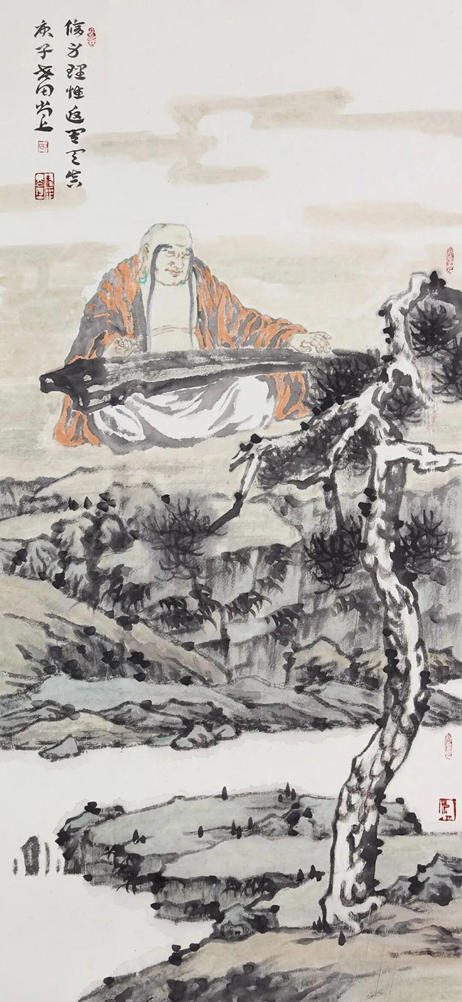 当代人物画家中能够以书入画的屈指可数,不敢染指此道者恐有所忌。一是没有在书法上下过功夫,二是受造型的束缚,单一地追求形准,把形准放在写意的最高的标准位置,至使很多画家沿着这条单一的路径一直走着而忘记中国画的本宗。写意人物画把“写”字放在前面就是突出以书入画。书法之谓艺术在于它的表现性,书法的线条最能表现书者情怀和心性,所谓“书为心画”即是书者通过或飘逸、或沉着、或苦涩、或甜美有一定之规的线来传导书者之情绪的。说它难,还有一点就是即使有一定书法基础的画家,画起人物来也心有余而力不足,遇到造型书法就用不上,可以说这是困扰当代不少有成就人物画家的一道难题。田娟老师的人物画最能体现她以书入画的写意精神。人物造型取之陈老莲,然亦非老莲面目。她的画,线条来自于她的书法,她认为章草更适合意笔的运用,她写的章草书法严格的说还未达至高妙的境地,然而她善于把握章草书之意,以书意入画,这的为画之道,也是她的过人之处吧。