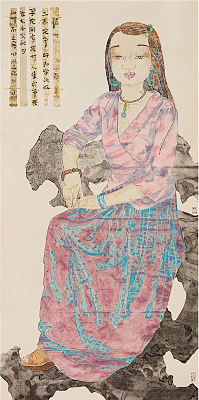 当代中国画的发展已经形成了一个多元的格局,无论是风格、样式、还是表现技法都比以往丰富而多样;尤其中国人物画由于素描的介入,人物画在大场面、多人物的创作上控制性、整体性、深入程度是超越前人的。当代人物画创作可以说是南北迥异、东西纷呈、群星璀璨、百花齐放、多元互补,人物画家都在时代性和个性上求索,手法、审美的多样是促成这一局面的主要因素。青年人物画家田娟老师以其淡雅、细腻、古意、沉静的画风崭露出一位青年女画家的个性和才华。她的画有三点值得重视:一是创作手法上以书入画、二是创作思维上避熟就生、三是审美追求上古意淡雅。