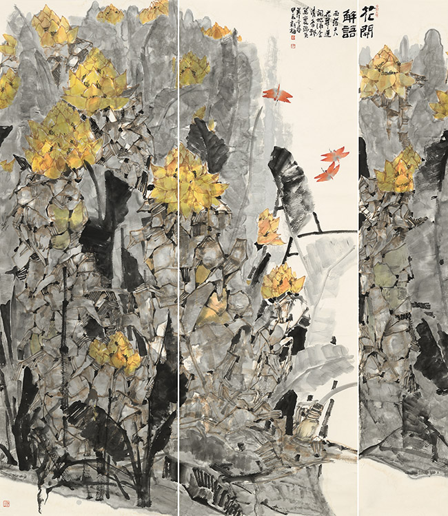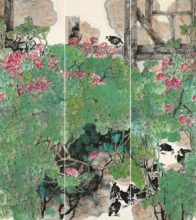 从容中道话新梅 ——女画家马新梅是富有人文情怀、艺术理想与追求的,是难得的优秀女画家。在当代青年女画家中她是低调而从容积极探索的一位艺术虔诚者,是一位思考在前动手在后的富有思辩的女画家。马新梅的画路很明确,主要有两种艺术语言的表达。一路是水墨大写意花鸟,此路画风的作品水墨氤氲,用笔爽利,有磅礴之势,用墨大胆,有酣畅淋漓之气,得乃师当代大写意花鸟画大家张立辰先生之传,颇有乃师之质。这路画风的作品富含吴昌硕、潘天寿此流派写意花鸟画之传承文脉,有气与质含其中,未受当下时风和西方式的艺术思潮所影响,未去迎合流俗的审美趋向,追求传统民族大写意花鸟的正脉与写意精神,注意对笔墨精神的追求。另一路是以线条勾勒加色彩塑造渲染的主题性花鸟画创作。此路画风的作品以自然题材为对象,以主观性构思加以表达,强化画面的平面视觉张力,作品富有当代性和装饰意味。对色彩的运用既含有传统中国画画法中"随类赋彩"的传统手法也吸收西方艺术色彩的用色手法,画面注重整体色调的统一与局部的微妙而丰富的变化对比来呈现东方审美的意境与意韻。注重画面实与虚的平面对比与块面对比,以此来强化审美的视觉张力,甚合当下读图视觉时代的审美需求。这一路的作品是其近期的主要创作方向,也是其主要艺术思想与艺术追求的表现。中国艺术是线的艺术,也是生命化的艺术,唐人张彦远说“无线者非画也”,线条的质地、弹性、节奏与韵律承载着作者的品格、灵气、情性与素养,蕴含着作者在当下的生命信息。谢赫在六法中强调,第一法曰气韵生动,等二法曰骨法用笔,强调用笔用线在中国画表现的重要性,也说明线条在中国画作品中重要的审美特质与审美地位。中国画归根结底,画画得用笔,画画得用线,中国画难以离开笔和线,这是传统中国画的民族性与生命特质。当代的中国画画家需要用线去重新面对眼前的自然世界,包括自我内部的心灵世界。马新梅重新思考并理性回归到以线为质的主观性表达,体现出她对中国画传统重新认识的艺术思考,透析出她做为女性画家难得的缜密与哲思。她用这种即工非工即写非写的书写性线条为主构筑自己的绘画语言,构建自己作品中的深度与空气透视、自然透视与人工透视的目眩视觉效果。以内心冥想的深度与维度,将自然形象转为思维概念类推方式,在感官上和精神上渗透现象世界,折射反映和表达出其女画家身份的细腻情感,表达出其对人生诗意美好的精神向往。很好地体现出其内心的审美品味与审美素养,很好地体现出其心性品格和人生品格。身为女性画家,马新梅的作品无论是大写意作品还是以线条勾勒为主色彩塑造渲染的作品,都呈现出一种开阔的气象,从容中道的气度,作品品格不激不励不偏不倚,有中正平和的审美呈现,极为难得。更可贵的是做为女性画家,其作品无脂粉之气、无柔弱之态,更无世俗的呻吟病态之戾气,有的是充满着阳光感和岁月与生命沉淀的生命律动和气律,给观者感受到的是正道温暖的心灵荡涤。当然,马新梅的艺术道路还在探索途中,还在前行的途中,其艺术风格与艺术语言的叙述与表达也还在完善中。古人常言读万卷书以澄怀观道,行万理路以通达事理,我更愿以“日习则学不忘,自勉则身不堕”为心念与马新梅共勉。我相信凭其对艺术的虔诚,对艺术的理性思考和执着的追求,心手一念而归一,再假以时日,必有大成。期待之。